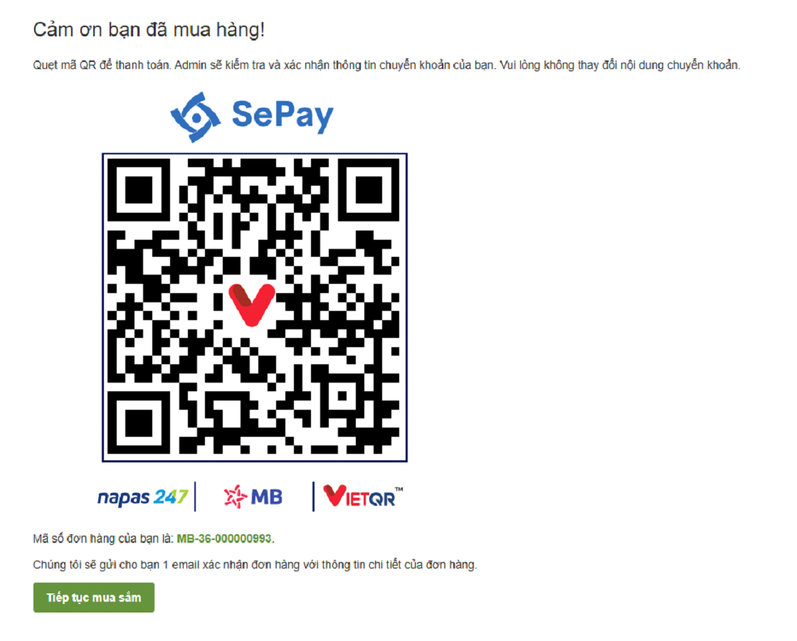 Thông báo tiếp theo đối với hình thức thanh toán qua mã VietQR: